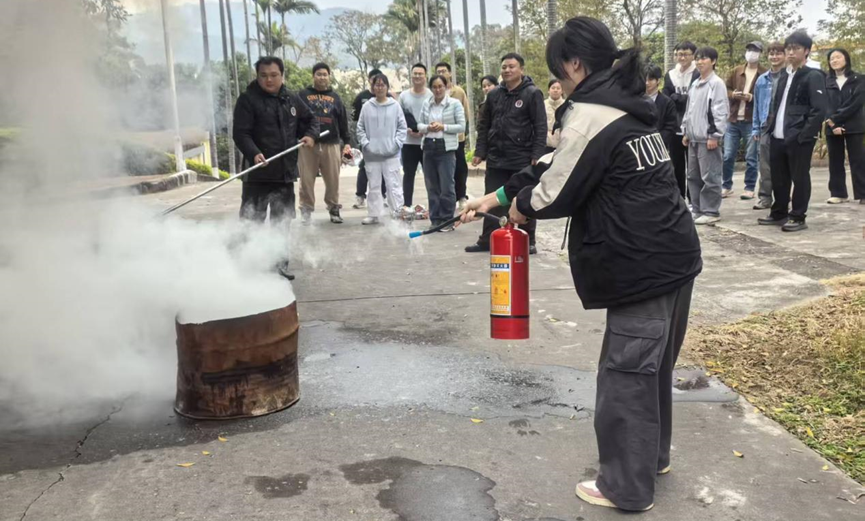 培训还开展了灭火器演练实操活动,现场参与的职工与学生在专业人员的指导下,使用干粉灭火器迅速准确扑灭火焰,消防演练顺利结束。
